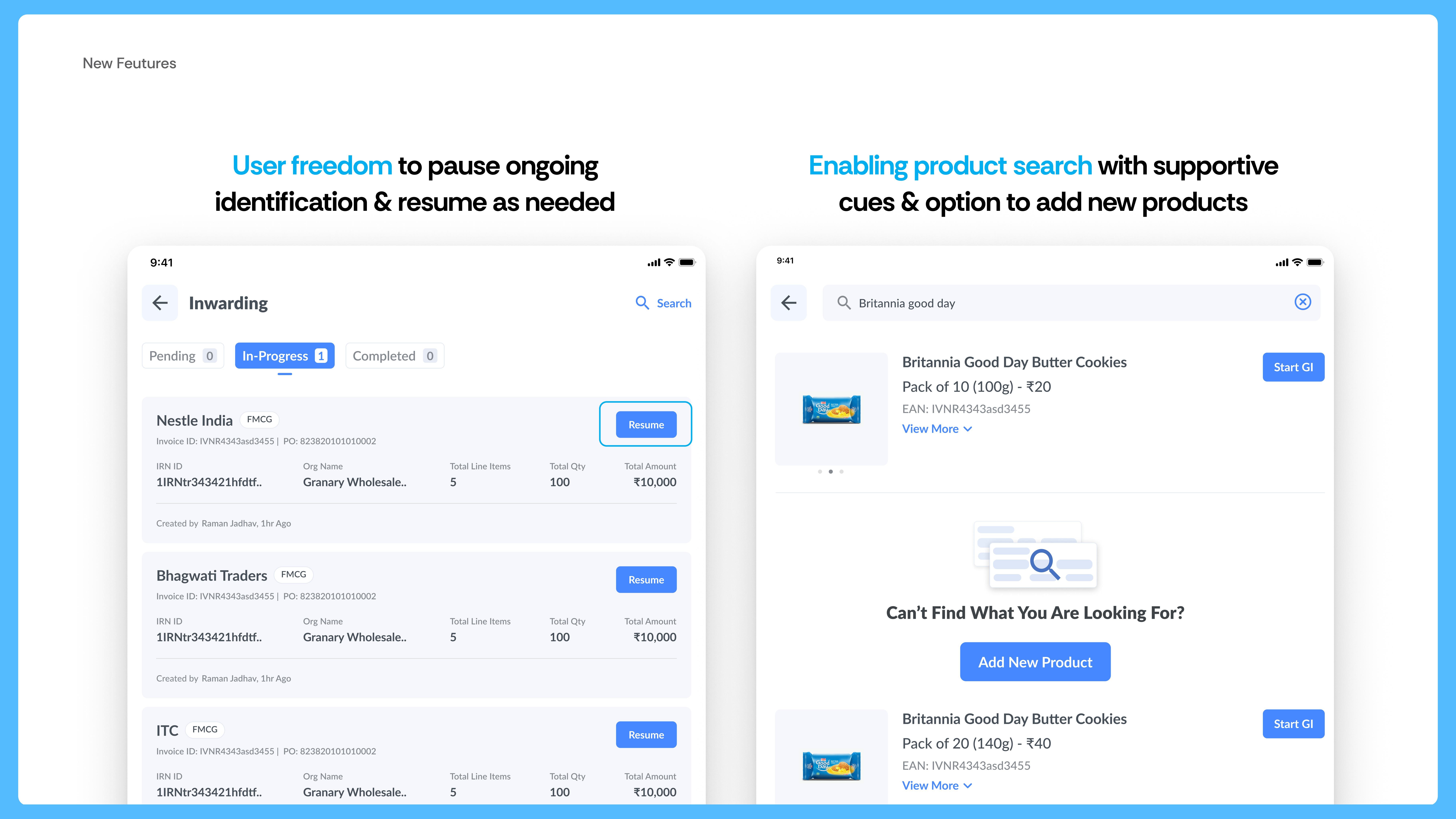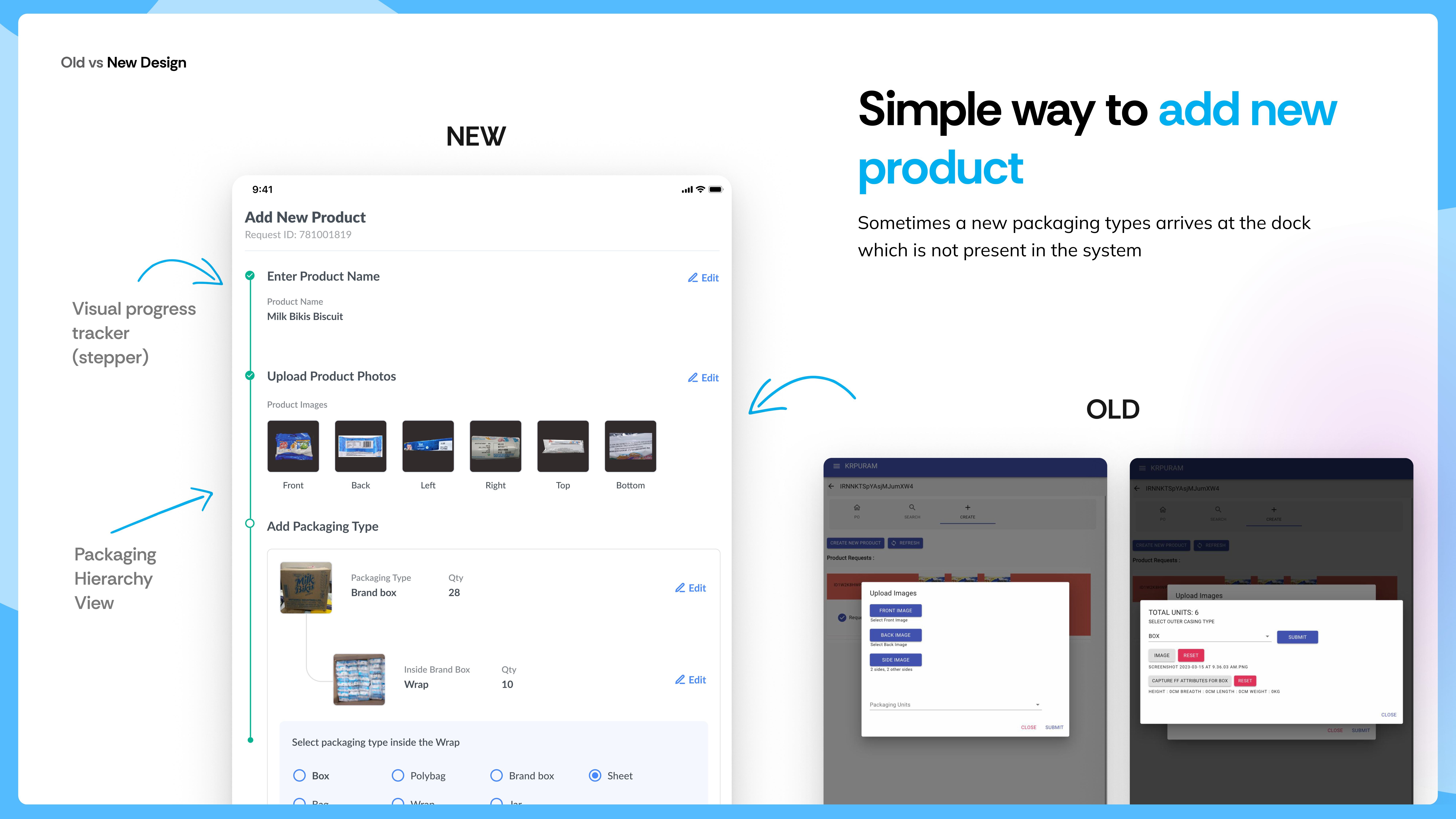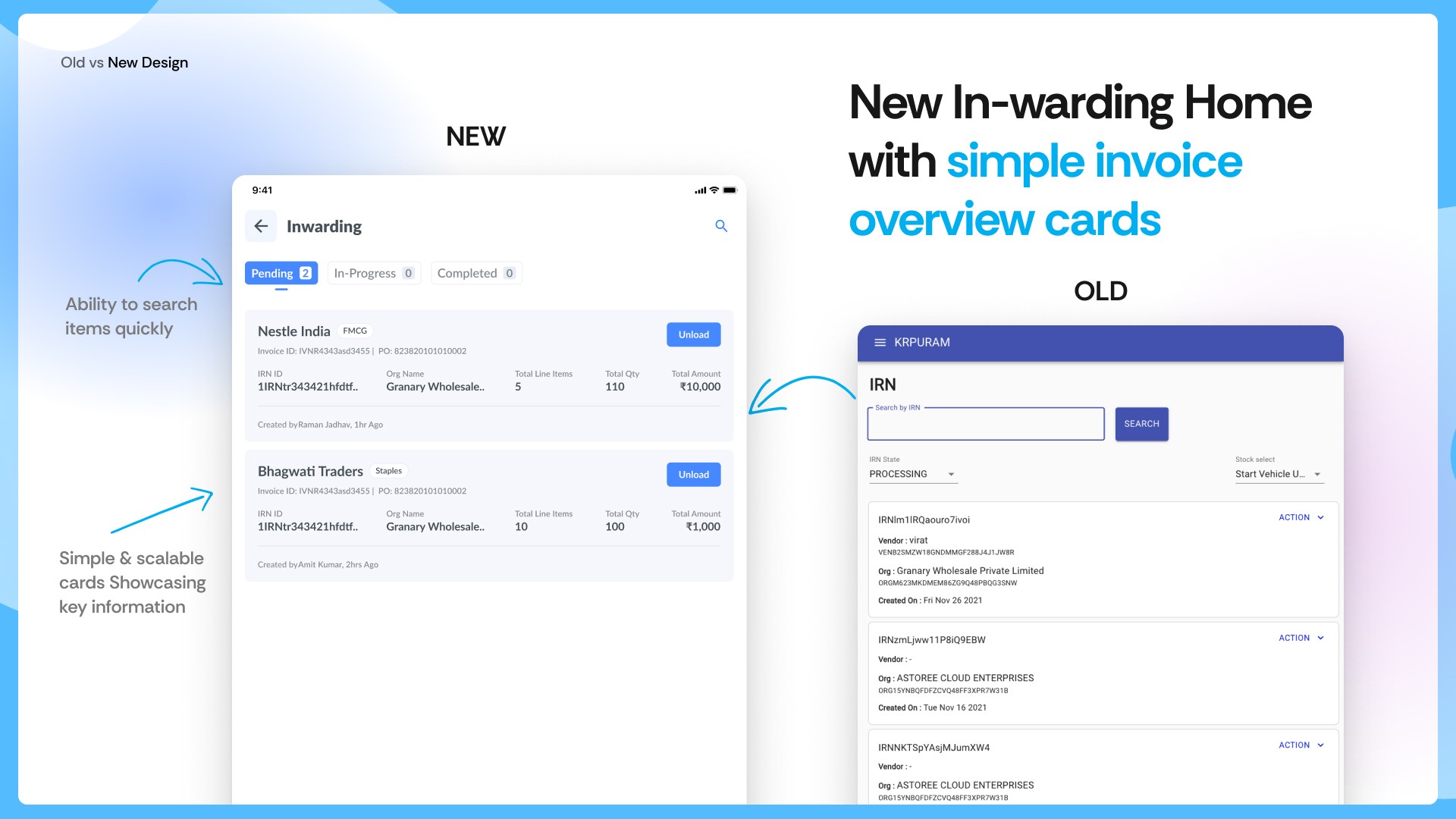 The warehouse’s in-warding process combined inefficient paper-based tasks with an outdated, error-prone tablet design — resulting in wasted time, delays, high manpower requirements, and frequent mistakes. Limited device compatibility, poor usability, and long training times further slowed operations. This project aimed to streamline workflows and modernize the interface to improve speed, accuracy, and scalability.